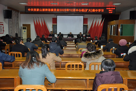 2020年12月16日上午,湖南省贺家山原种场在场培训楼教室举行党委中心组(扩大)集中学习。全体党委成员、各党总支(支)部书记、机关各科室、场属各单位主要负责人共30余人参加会议,会议由场党委委员、副场长、总农艺师李建彬主持。