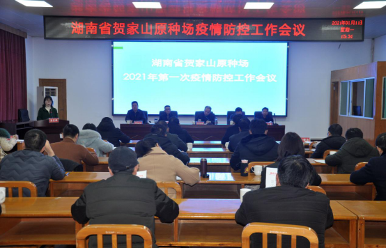 2021年1月11日,省贺家山原种场在场培训楼会议室召开2021年第一次新冠肺炎疫情防控工作调度会。会议由场党委委员、副场长、总农艺师李建彬主持,全体场领导、场机关各科室和场属各单位负责人共40余人参会。