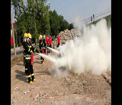 首先使用干粉灭火器进行实战灭火演练,两个人一组干粉灭火器实战灭火演练主要用于初起火灾的灭火扑救,它对固体火灾及带电类火灾有良好的扑救效果。其次进行的是三人一字形单甩水带消防灭火基本科目演练,它由水龙带展开、水枪连接等动作组成,主要用于距离较长,突发凶猛火灾的灭火扑救。最后进行的是水枪灭火演练,两名队员紧握水枪,对准火源,另外一名队员缓慢打开消火栓阀门至最大,对准火源根部喷射进行灭火,直到将火完全扑灭。整个演练活动组织有序,达到了理想效果。