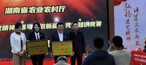 2021年12月1日,湖南省农业农村厅“弘扬建党精神 谱写三农新篇”党史知识竞赛半决赛、决赛在湖南省工业贸易学校举行。经过前期的预赛闭卷笔试、半决赛面试考核、决赛知识竞答等环节,我场由刘立新、陈思、刘佳薇三名同志组建的竞赛队脱颖而出,最后荣获二等奖。