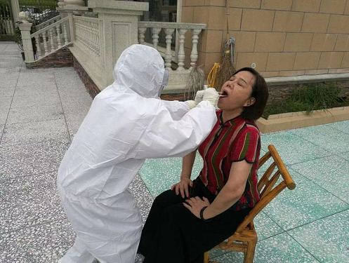 李琼上门为居民进行核酸检测