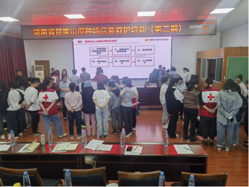 10月17日,我场邀请常德市红十字应急救护培训专家开展为期半天的应急救护培训,市红十字会专职副会长朱艺敏等一行进行现场指导。全场干部职工共100余人参训。