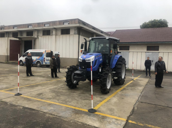 培训采用“理论+实操”相结合的方式进行。在理论培训中,区农机事务中心安全监理大队教导员以《中华人民共和国道路交通安全法》、《中华人民共和国农业机械化促进法》、《拖拉机和联合收割机驾驶证管理规定》和《拖拉机和联合收割机驾驶证业务工作规范》等法律法规为重点内容,对农机驾考人员详细讲解了安全驾驶、安全隐患排查、事故应急处置、农机具维修保养等知识。驾驶技能实操考试时,考场设置了安全警戒线,划设了技能考试场地,驾考农机选用井关T1054拖拉机及井关HF608G收割机各1台,由资深农机教导员进行示范移库。理论考试后,驾考员依次上机进行拖拉机、联合收割机实操考试,并全部通过。