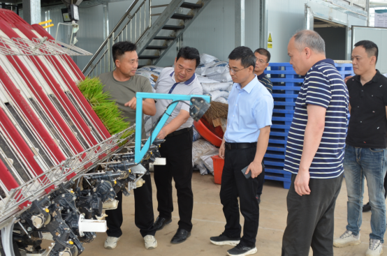 5月10日,常德市人民政府副市长黎军锋一行来到湖南省贺家山原种场调研智慧农业数字水稻生产工作,先后实地查看了贺家山原种场智慧农业数字水稻科研示范基地、智慧育秧中心、智慧农业数字水稻中控中心,详细了解基地环境监测站、自动虫情测报灯、田间气象站、无人驾驶旋耕机、无人驾驶机插(抛)秧、智能灌溉等信息化智能设备,以及粮食生产降本增效、智慧农业数字水稻数据管理平台发挥的作用、智能育秧中心生产运营情况等。常德市人民政府副秘书长彭智明参加调研活动。