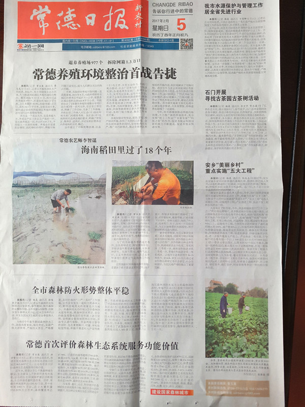 2017年2月5日,常德日报头版以《常德农艺师李智谋-海南稻田过了18个年》为题,对我场高级农艺师李智谋同志的先进事迹进行了报道。报道全文如下: