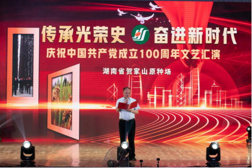 为展现新时代贺家山人民开拓进取的蓬勃朝气,6月25日晚,省贺家山原种场举行“传承光荣史∙奋进新时代”庆祝中国共产党成立100周年文艺汇演,场党委全体成员和800多名党员、干部、职工群众观看了演出。文艺汇演在富有农情特色的歌舞《在希望的田野上》中拉开序幕,精彩纷呈的节目赢得了观众的热烈掌声。