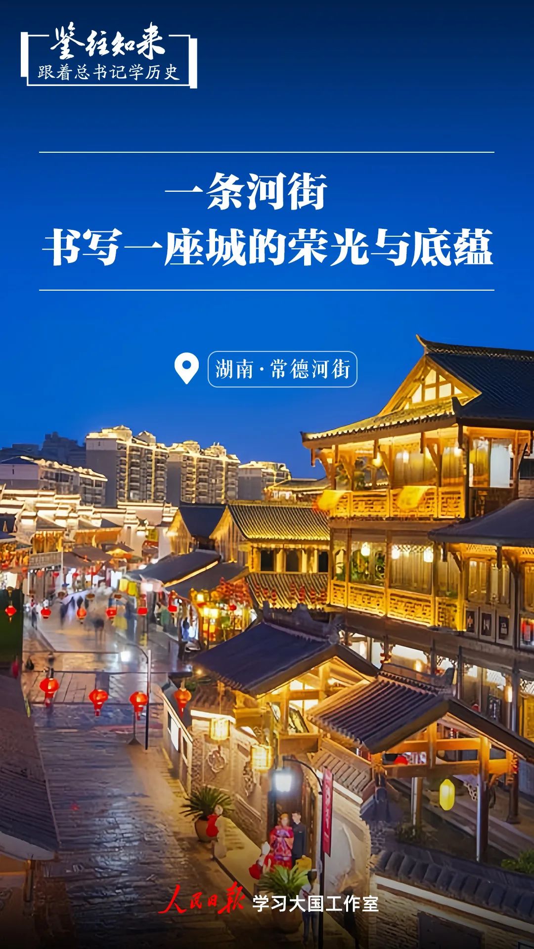湖南常德始建于2200多年前的战国时期,古称武陵、朗州,别名“柳城”。老子一句“为天下溪,常德不离”,为善德文化写下注脚,也为始名于北宋的“常德”注入了更深文化底蕴。 它东临洞庭湖,西连张家界,融武陵山的雄奇险峻、洞庭水的烟波浩渺于一体,自古有“云贵门户,黔川咽喉”之称。 它是人文荟萃之地,流传着嫦娥奔月、刘海砍樵等神话传说,留下了屈原、陶渊明、刘禹锡的诗词名篇,也记录下桃花源的美好愿景。 19日,习近平总书记来到湖南省常德市,首先考察了常德河街,了解历史文化街区修复利用、城市水环境综合治理等情况。跟随总书记的脚步,我们一同感受千年古街的历史变迁,感受非遗里的美好生活。 一道运河 流淌千年 水,是常德的灵魂。沅江和澧水均在常德穿城而过注入洞庭,城市腹地的穿紫河,则是一条奔流千年的古运河。 “穿紫河”名字的由来也颇具诗意。唐代诗人刘禹锡在《采菱行》中吟诵:白马湖平秋日光,紫菱如锦彩鸳翔。取诗中“紫菱”之意,穿紫河得名。 一泓碧水流淌千年,哺育了两岸百姓。到了上世纪80年代,因水系改道切断了水源供给,加之两岸污染物大量排放,穿紫河一度成为“臭水沟”,成为当地人的“心头之痛”。 水是生命之源,良好生态环境是最普惠的民生福祉。“要深入实施水污染防治行动计划,保障饮用水安全,基本消灭城市黑臭水体,还给老百姓清水绿岸、鱼翔浅底的景象。”习近平总书记为水资源保护指明了方向。 全线截污、降堤修闸、修建生态滤池、打造海绵城市……经过多年综合整治,穿紫河又恢复了生机,成为一条流光溢彩的“碧玉带”,人民群众安居乐业的“幸福河”。 一条老街 连通古今 常德河街,最早形成于明朝正德年间。《常德府志》记载,沅江岸边,一边是水,一边是城墙,从东门到大西门,绵延数里长的繁华河街,是为大河街、小河街、麻阳街。因为地势低洼,每次洪水“光顾”,街道总会积水成河,人们形象地称之为“河街”。 岁月流转,常德河街已迁建到穿紫河畔。那个屡屡出现在沈从文笔端、黄永玉画中的老街如今是什么模样? 麻石路两旁,商铺林立,依稀可见当年戏院、洋行、会馆、茶楼、客栈遍布的盛况。鸳鸯走马楼,古色古香的戏台上,常德丝弦、汉剧高腔、澧洲花鼓等民间曲艺轮番上演。上南门码头,再现了沈从文笔下的“湘西大码头”场景:有的拉纤,有的卸货,有的热情地招揽着客人,吊脚楼上灯影绰绰…… “穿紫河上紫气东来,一条老街乡愁还在,你若不来我的花不开……”常德河街,一首《你不来船不开》正在桨声灯影里传唱开去。 “一个热爱中华大地的人,他一定会爱她的每一条溪流,每一寸土地,每一页光辉的历史。”从牌坊街、三坊七巷,到平江历史文化街区,习近平总书记一次次走进古街古巷。 让城市留下记忆、让人们记住乡愁。如今放眼中华大地,正定古城再现北方雄镇风貌,鼓浪屿演绎万国建筑博物馆风情,北京胡同镌刻古都记忆与浓浓乡情……历史文脉融入现代生活,自然人文交汇成和谐宜居之地。 一碗擂茶 匠心传承 一根擂棒将花生、茶叶、生姜等细细研磨,粉末置于碗中,开水冲泡,满屋生香,轻啜一口,回味绵长。“压桌”菜目不暇接,油糍粑、锅巴、酸萝卜、蕨菜、豆角、香干…… 这便是擂茶。源于汉、盛于明清,擂茶至今仍是常德人待客的首选美食。这项舌尖上的非遗不仅让人们体验到常德的老味道,也体会到蕴含其中的匠心传承。 麻质画、桃源刺绣、常德木雕、花鼓戏、澧水船工号子……种类繁多的非遗,是常德厚重的“文化家底”,也是文旅融合的“富矿”。 在常德,传统非遗正焕发勃勃生机。它融入市民的日常生活之中,也以创新设计赢得游客青睐。行走河街,一个个非遗作坊里,传承人现场展示绝活,游客可赏、可购、可玩,也得以近距离感悟工匠择一事终一生的坚守与执着。 文化传承发展座谈会上,习近平总书记高屋建瓴:“中华文明历经数千年而绵延不绝、迭遭忧患而经久不衰,这是人类文明的奇迹,也是我们自信的底气。坚定文化自信,就是坚持走自己的路。”
