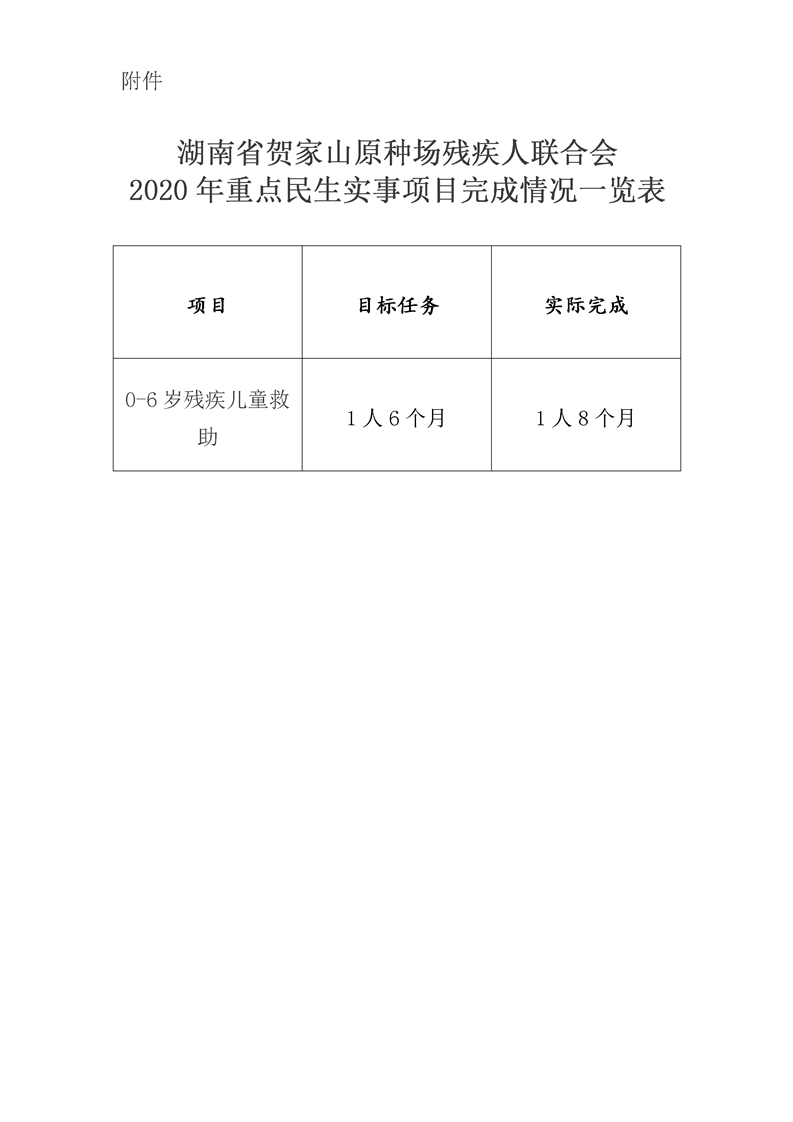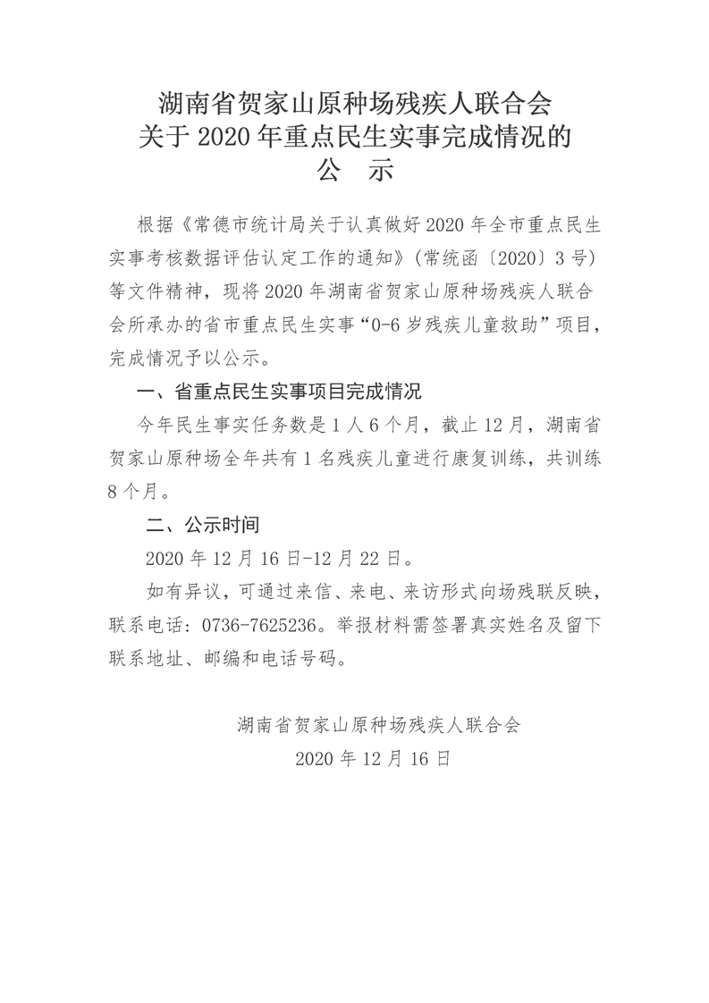 湖南省贺家山原种场残疾人联合会关于2020年重点民生实事完成情况的公示