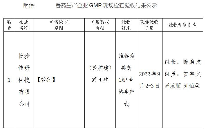 ¸ù¾Ý¡¶ÊÞÒ©Éú²úÖÊÁ¿¹ÜÀí¹æ·¶£¨2020ÄêÐÞ¶©£©¡·µÄ¹æ¶¨£¬ÒÀÕÕ¡¶ÊÞÒ©Éú²úÖÊÁ¿¹ÜÀí¹æ·¶¼ì²éÑéÊÕ°ì·¨¡·¡¶ÊÞÒ©Éú²úÖÊÁ¿¹ÜÀí¹æ·¶¼ì²éÑéÊÕÆÀ¶¨±ê×¼£¨2020ÄêÐÞ¶©£©¡·£¬ÎÒ°ìÅɳöר¼Ò×é¶Ô³¤É³¼ÑÑпƼ¼ÓÐÏÞ¹«Ë¾GMPʵʩÇé¿ö½øÐÐÏÖ³¡¼ì²éÑéÊÕ¡£ÏÖ½«¼ì²éÑéÊÕ½á¹ûÓèÒÔ¹«Ê¾£¨¼û¸½¼þ£©£¬¹«Ê¾ÆÚΪ2022Äê10ÔÂ8ÈÕÖÁ10ÔÂ14ÈÕ£¬ÈçÓв»Í¬Òâ¼û£¬ÇëÏòÎÒ°ì·´Ó³¡£