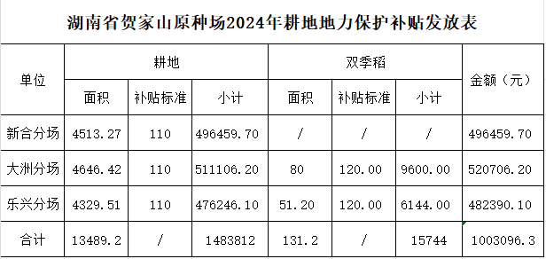 附件:湖南省贺家山原种场2024年耕地地力保护补贴发放审核表