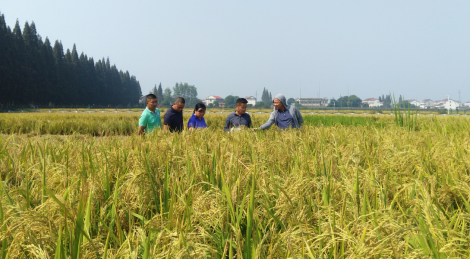 蔡克锋一行对在我场栽培试验的甬优系列水稻新品种逐一现场评议,对品种特性、田间培管、病虫害防治等技术问题进行了深入交流讨论。