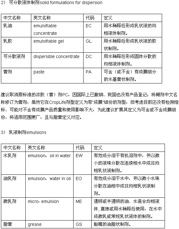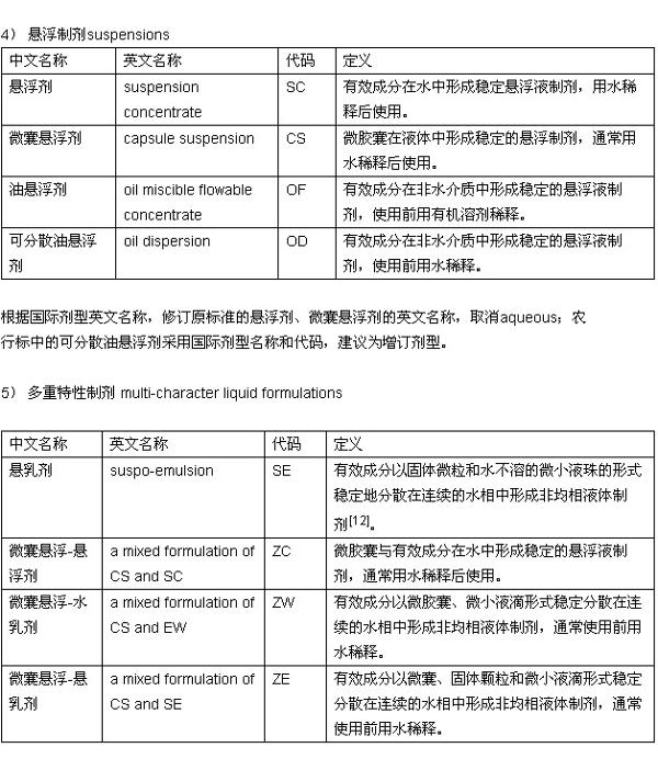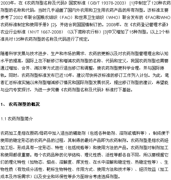 浅谈我国农药剂型名称和代码