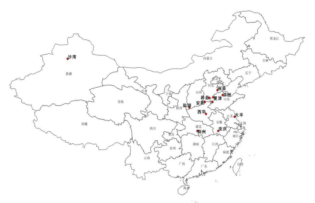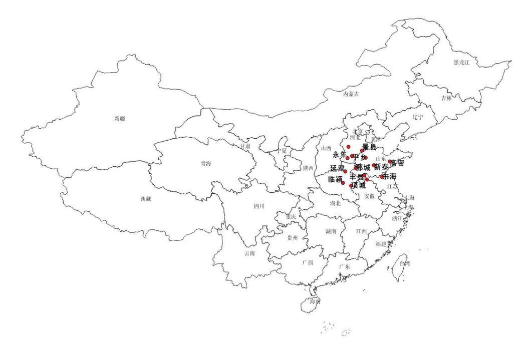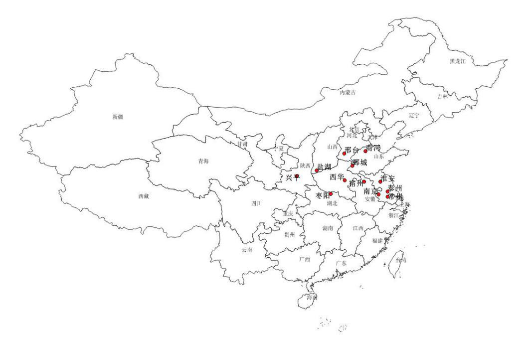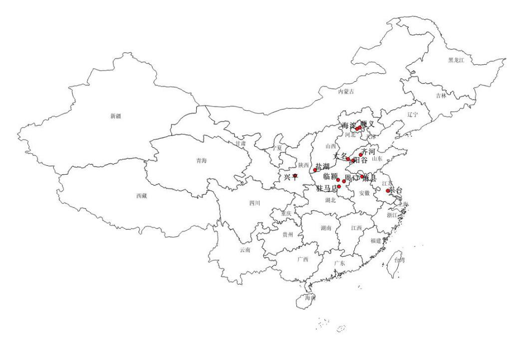 图6. 小麦赤霉病抗药性监测点分布区域图