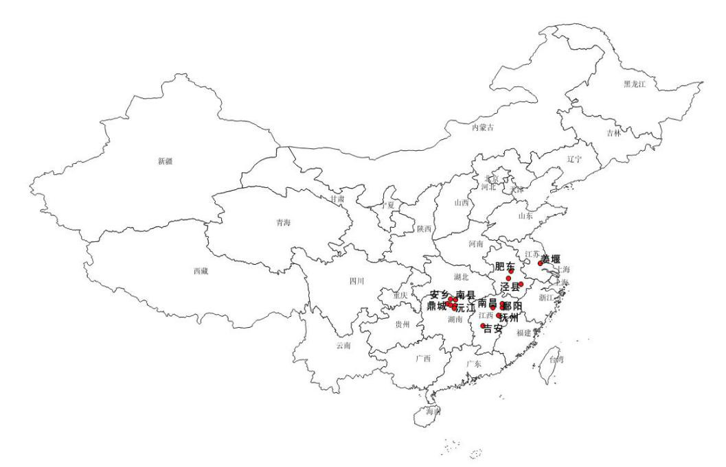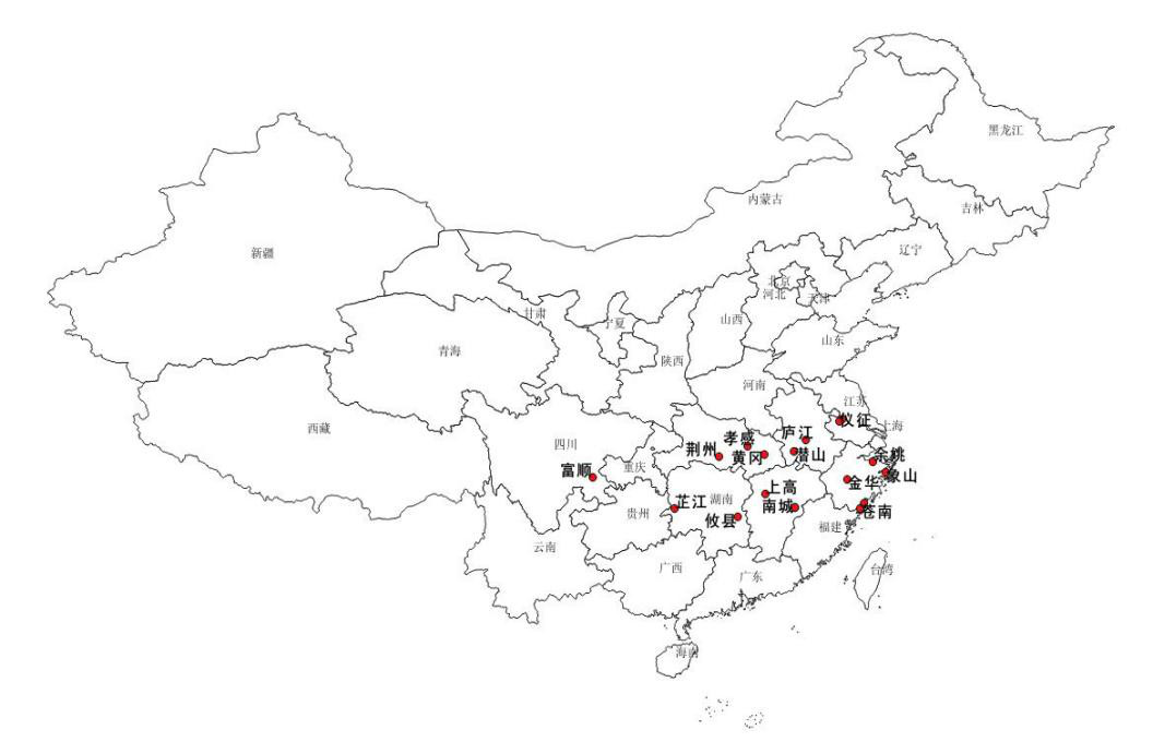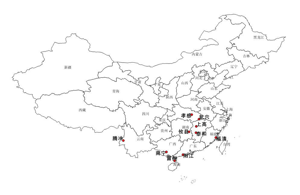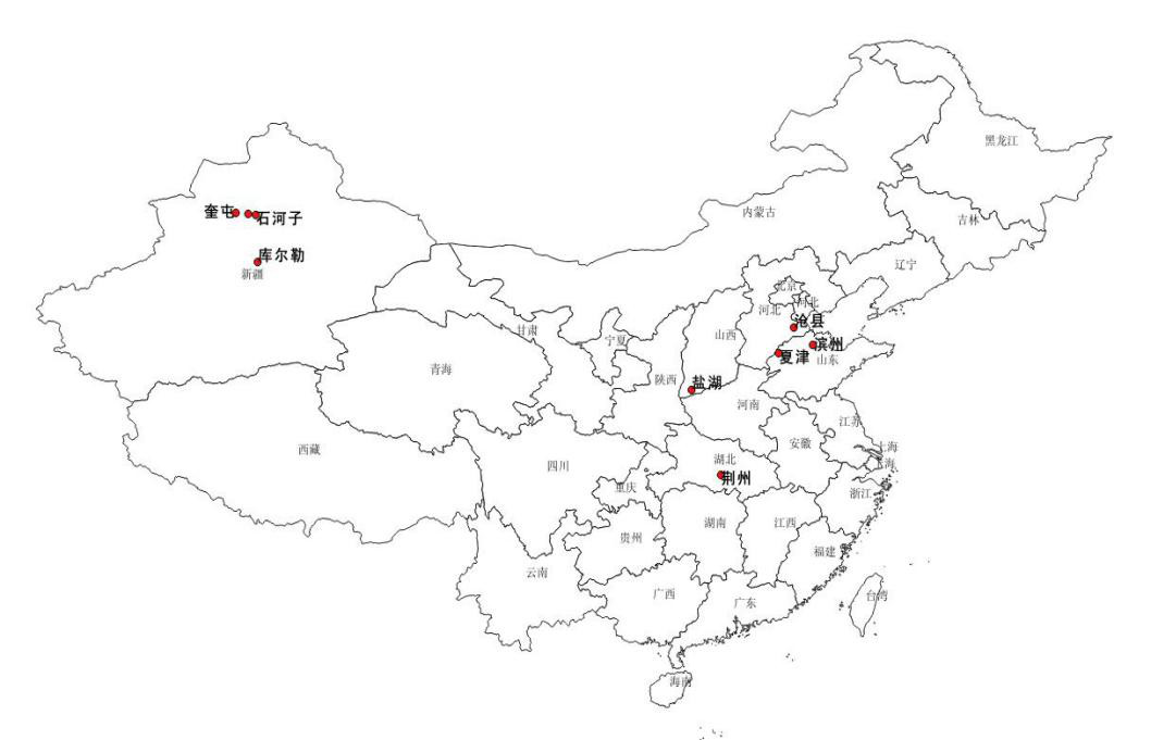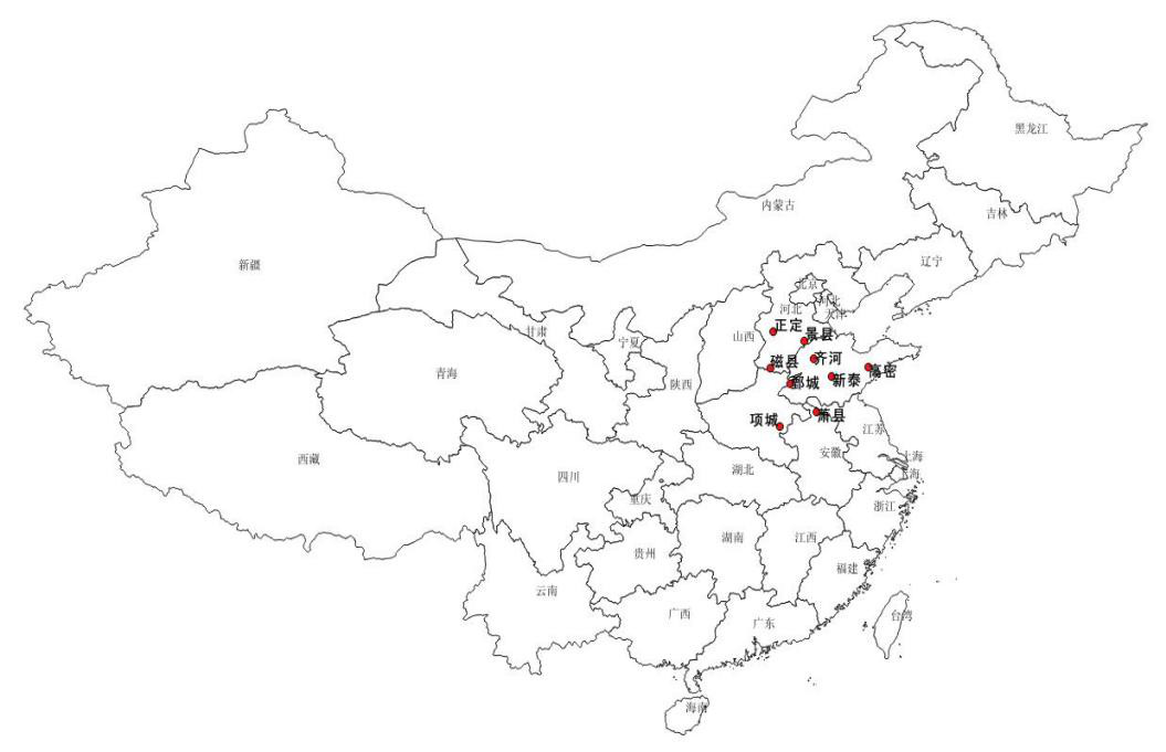 图6. 小麦赤霉病抗药性监测点分布区域图
