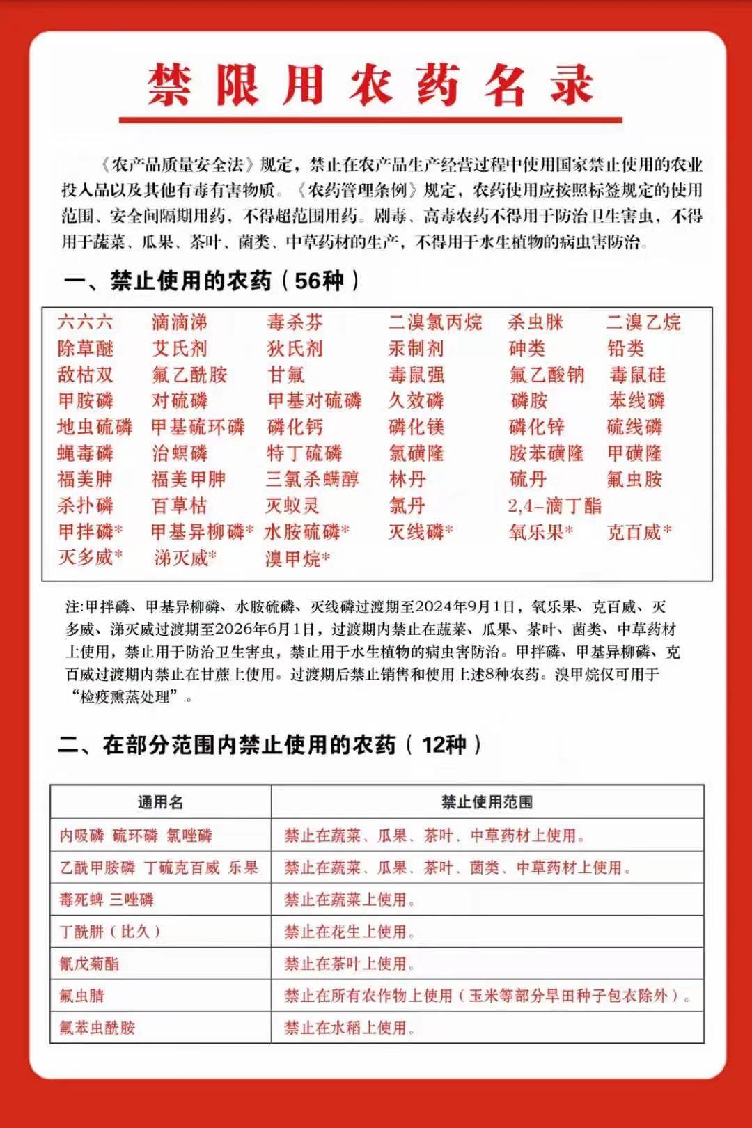 禁限用农药名录