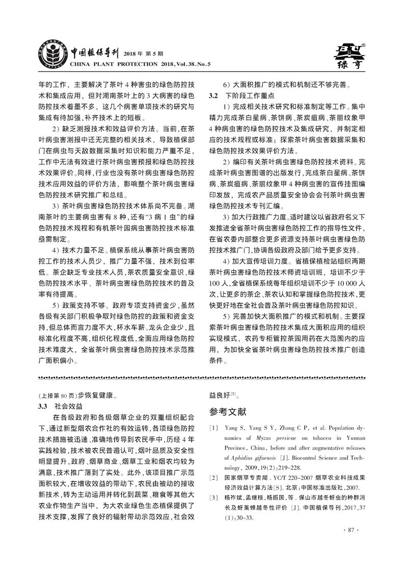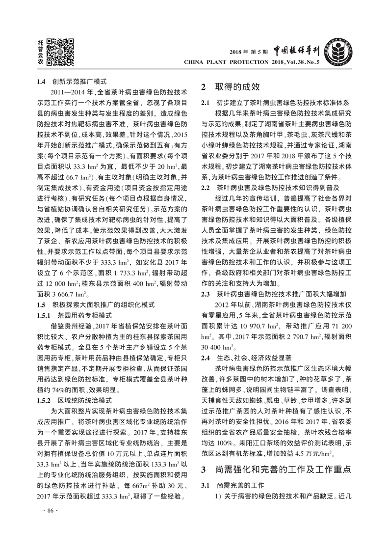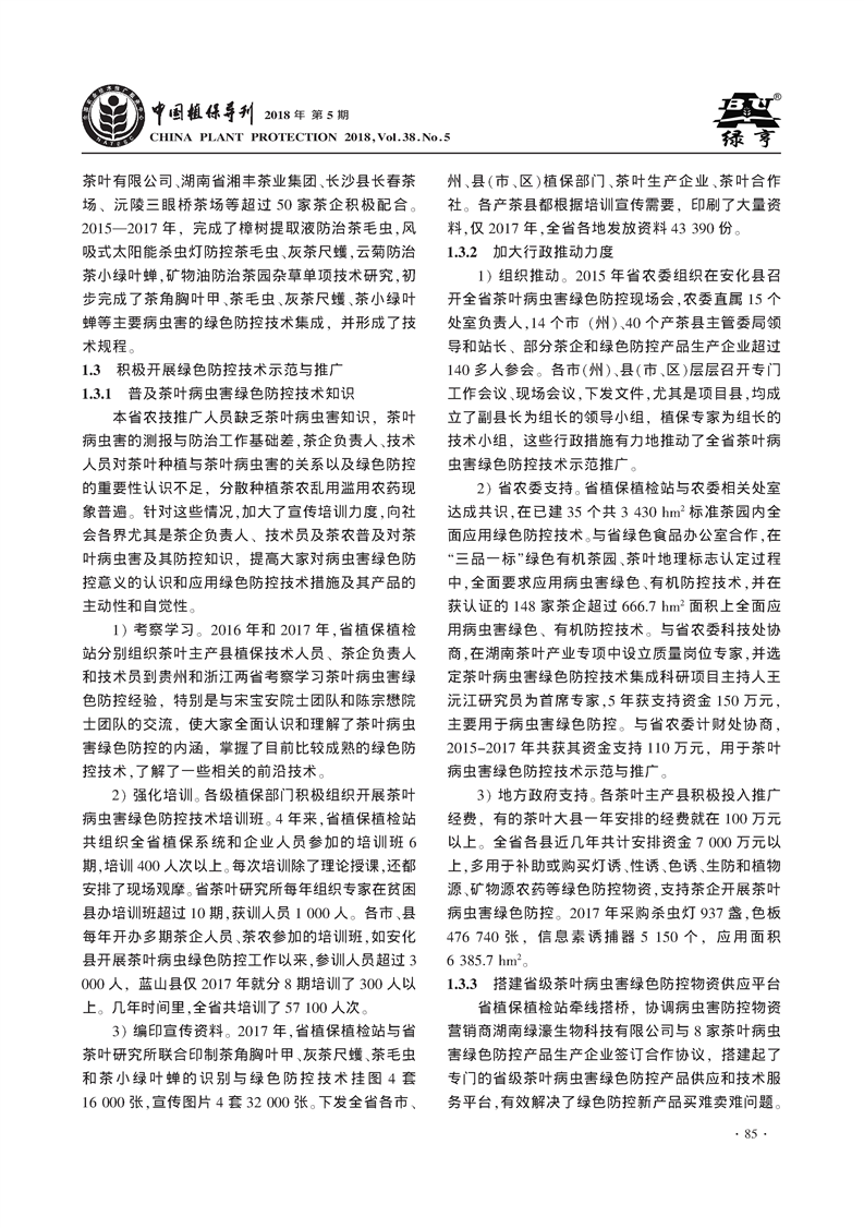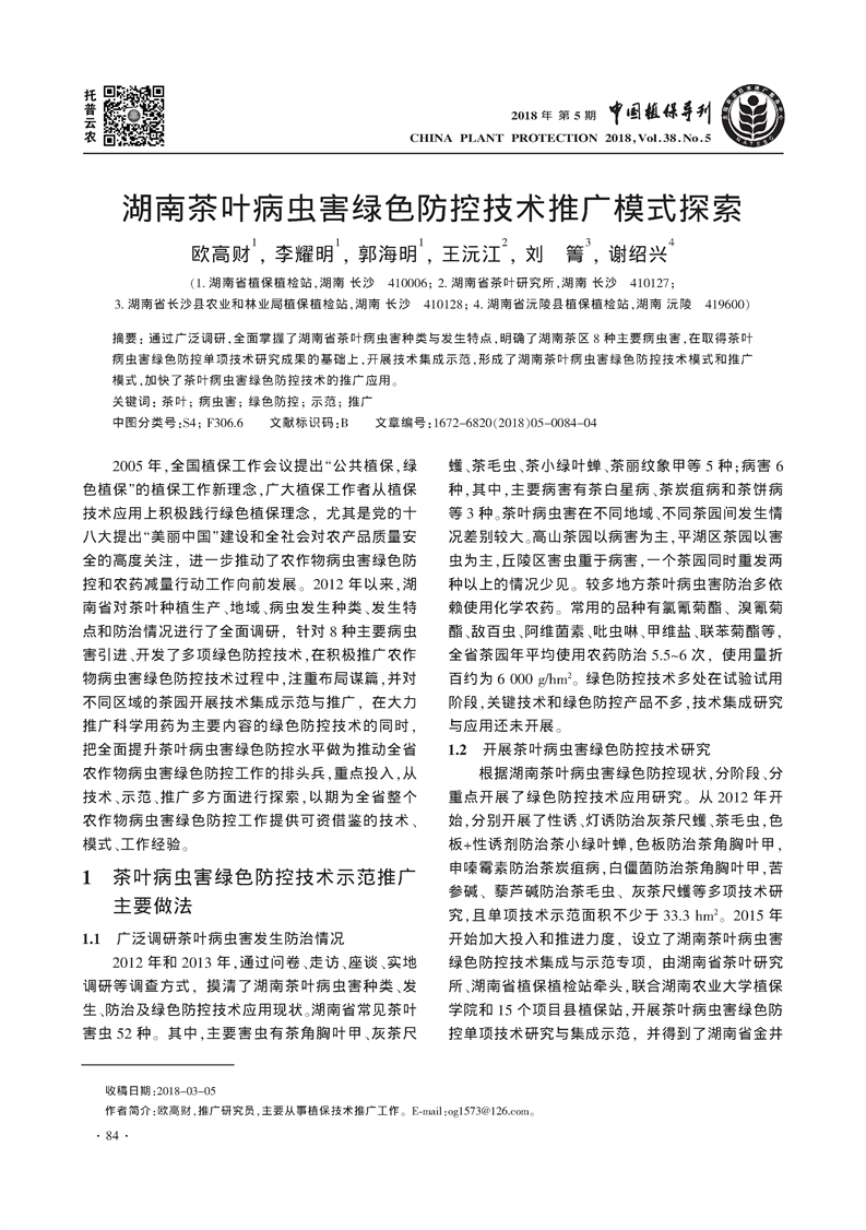 湖南茶叶病虫害绿色防控技术推广模式探索