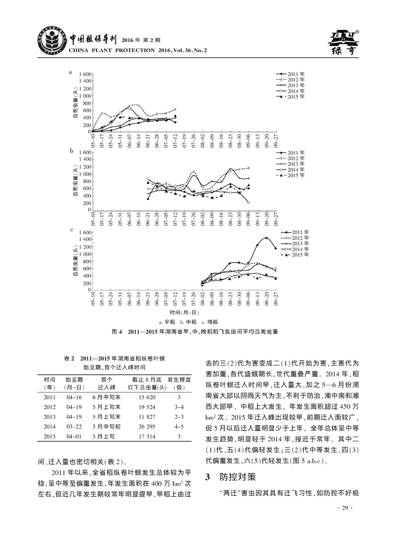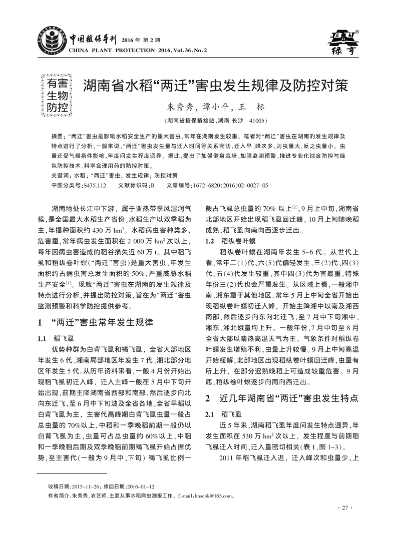 湖南省水稻“两迁”害虫发生规律及防控对策