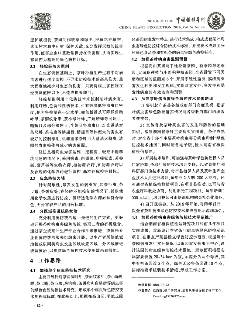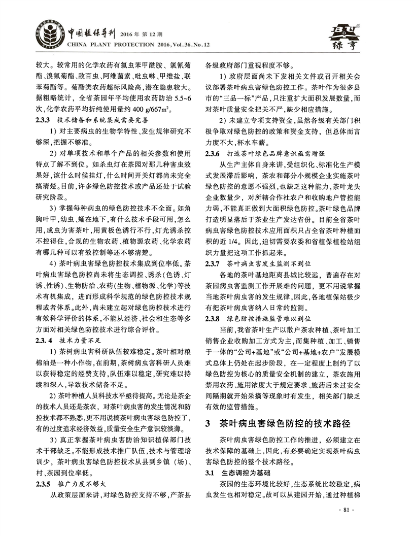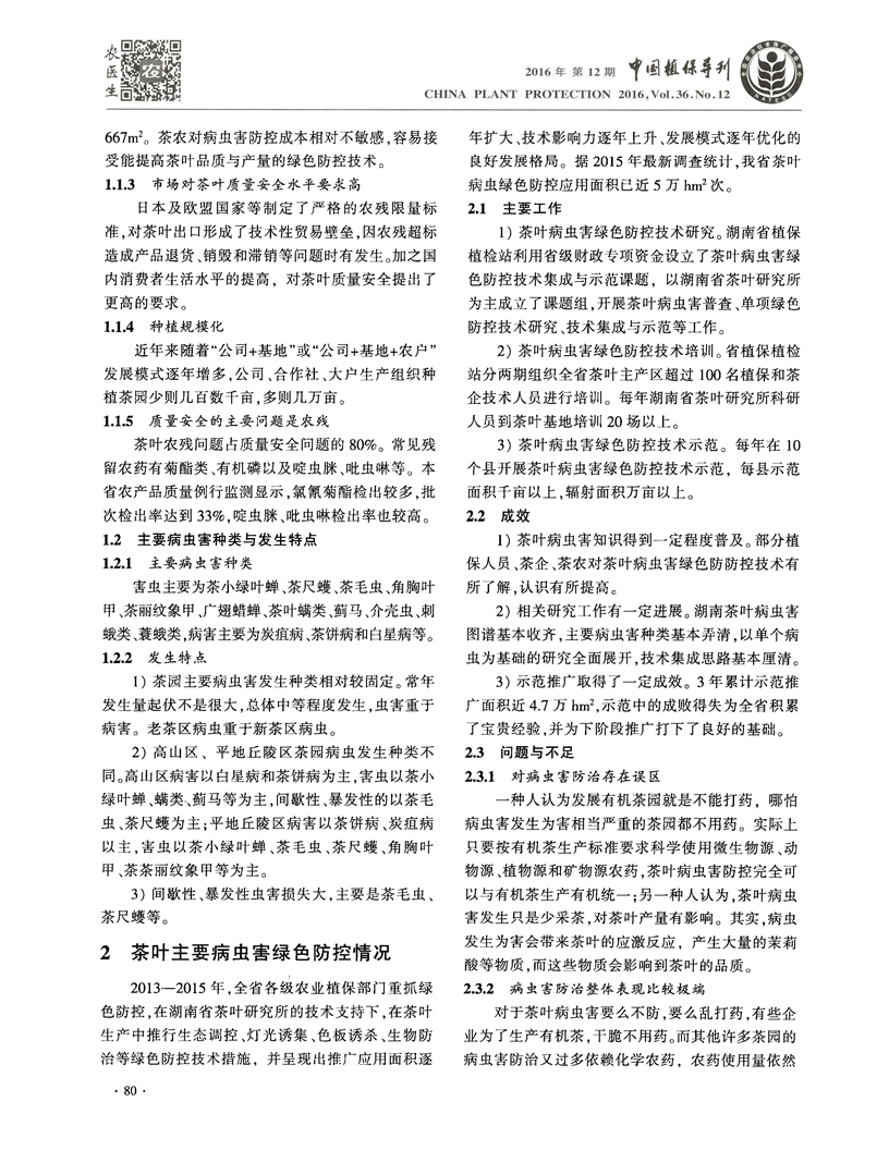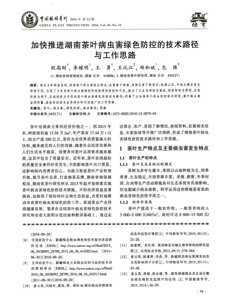 加快推进湖南茶叶病虫害绿色防控的技术路径与工作思路