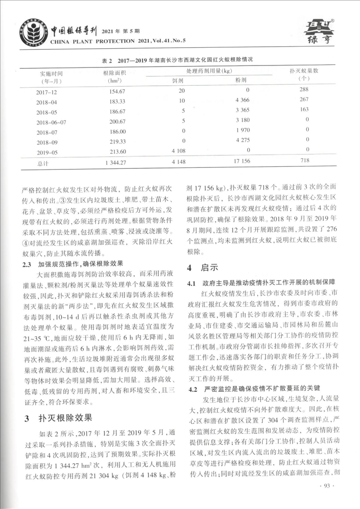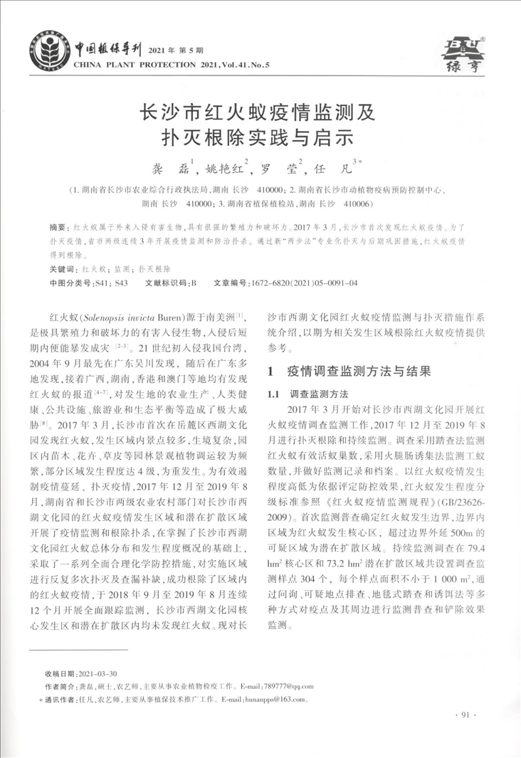 长沙市红火蚁疫情监测及扑灭根除实践与启示