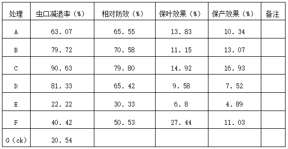 保产效果(%)=(处理区百梢重量-对照区百梢重量)*100/对照区百梢重量