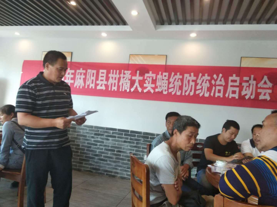 四、办点示范,点面结合。根据省站部署,实施了柑橘病虫害全程绿色防控示范县创建项目,点上全程推行专业化统防统治,推广应用绿色防控技术,实行药剂全免费,施药人员劳务费财政买单。创办2个县级示范区,18个乡镇示范点,示范面积4200亩。全县面上做到三免费:免费培训、免费发放技术资料、免费发放虫果袋。