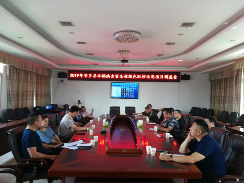 5月23日,安乡县植保站组织全县专业化统防统治服务组织负责人召开2019年水稻病虫害全程绿色防控示范项目调度会,县农委副主任何秋梅出席会议。