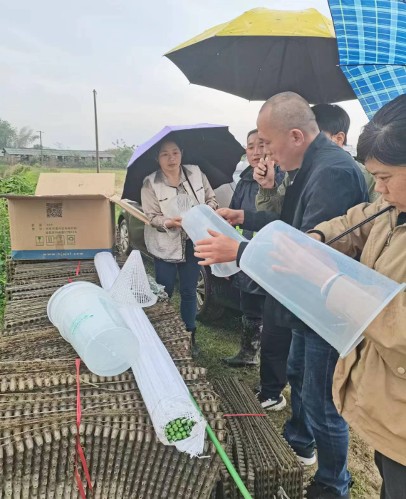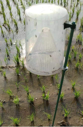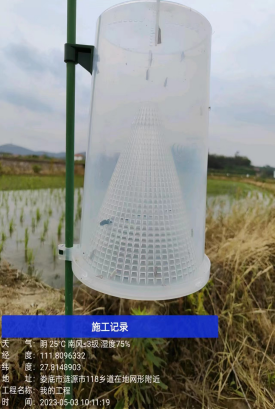 “插装置要讲究方法,每亩插一个或间距25米,进虫口距泥面20-30厘米,这样性诱置才能充分发挥作用,把雄虫吸引进去。二化螟性诱捕技术就是在安装好的二化螟性诱捕器里投放二化螟诱芯,诱杀二化螟的雄成虫,阻断雄成虫与雌成虫交配,让雌成虫产生的卵成为无效卵,进而降低了二化螟发生的基数,达到绿色防控的目的。”在涟源市斗笠山镇二化螟绿色防控示范基地,植保技术人员正在向农户详细讲解二化螟性诱捕器安装技巧及原理。