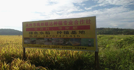 桃岭村零农药零化肥绿色水稻种植基地示范牌