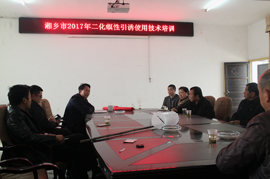今年,湘乡市农业局按省站的安排部署,在山枣、栗山、虞塘、潭市、梅桥等5个乡镇开展二化螟性引诱技术推广。由于时间紧迫,在4月12日上午二化螟性引诱设备到湘乡后,下午立即召集五个乡镇农技站长及植保专干进行二化螟性诱技术培训,各乡镇在4月13-14日两日将性引诱器按要求全部安插到田间。