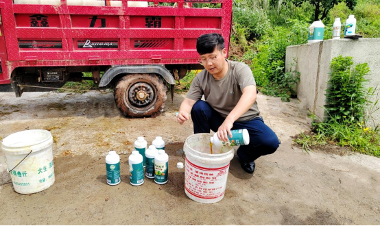 “首先,我们按1:1点比例将农业生物油和水勾兑成母液,不断搅拌,使水油充分融合……”麻阳苗族自治县高村镇高级农艺师滕久才一早就在柑橘种植大户向玉学的产业园里忙活,为提供社会化服务的技术工人讲解农业生物油的使用技巧及注意事项,技术工人们边听边记,十分认真。