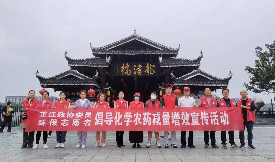 近日,芷江县政协委员志愿者在城区人流密集区龙津风雨桥开展倡导化学农药减量宣传活动,志愿者们向市民发放化学农药减量倡议书,并为市民现场解答化学农药减量技术问题。