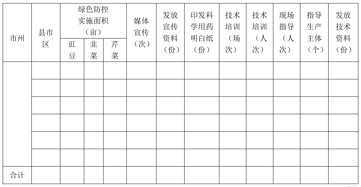 (四)强化信息报送。各市州农业农村部门要汇总所辖县市区豇豆全程绿色防控、农药减量增效技术方案,连同联络员信息于12月30日前一并报送;2023年5月10日前,汇总本地豇豆种植主体名录(见附件1)报我厅,后续根据生产季节特点动态增补或删减;在豇豆上市期实行工作进展半月报制度(见附件2、3),2023年5月10日报送第1次信息,后续每半月报送1次,直至当年豇豆生产期结束。有设施种植豇豆的市州,只要有豇豆生产,就要上报信息。报送的时效性、真实性与食品安全工作评议考核挂钩。