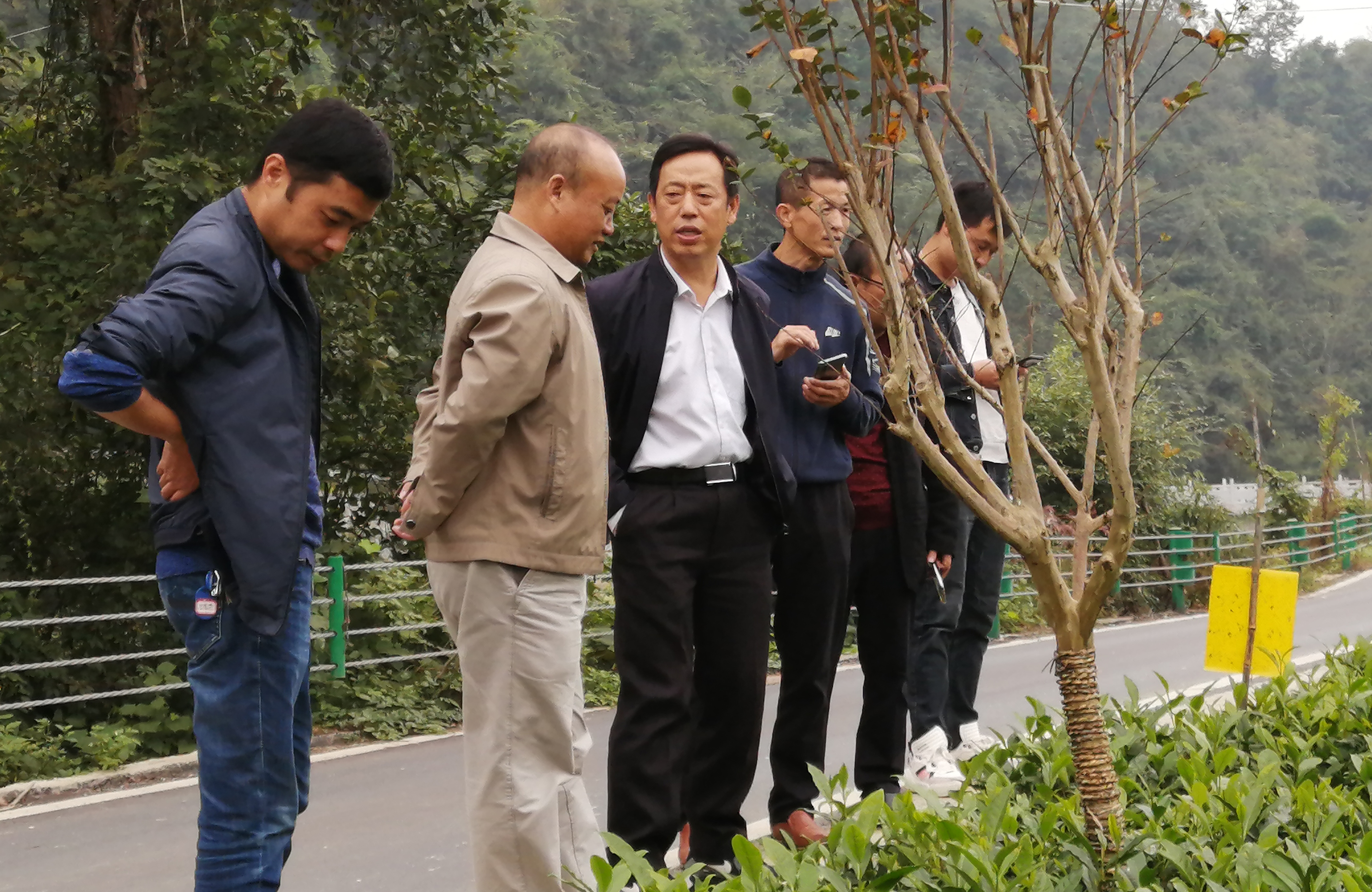 专家组一行到吉首市马颈坳镇隘口村湘西黄金茶基地进行实地调研,调查了解茶园病虫发生、绿色防控技术实施和宣传发动等情况,并听取了负责人对茶叶基地绿色防控工作汇报。针对绿色防控工作中存在的一些问题,专家组提出了如何进一步做好绿色防控,提质增效等建议。同时针对猕猴桃桔小实蝇危害情况进行实地调查了解。向邦豪强调,一要抓好技术培训,把防治桔小实蝇实用技术送到种植户手中;二是在防治过程中要以绿色防控为主,减少农药使用次数和使用量;三要严格按照农药使用操作规程,使用高效、低毒、低残留的环保型农药和生物农药;四要探索出适宜当地防治桔小实蝇的技术要领,为来年产业健康发展提供有力技术保障。