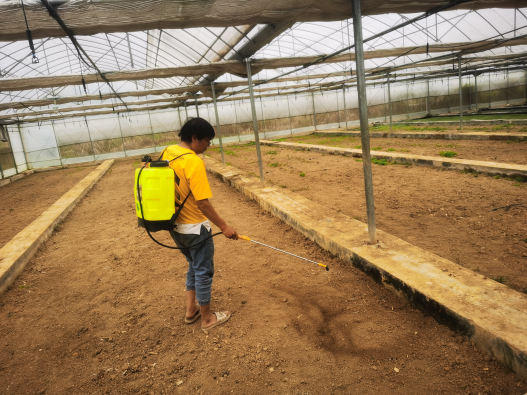 4月15日指导水稻机插秧大棚消毒