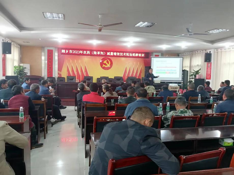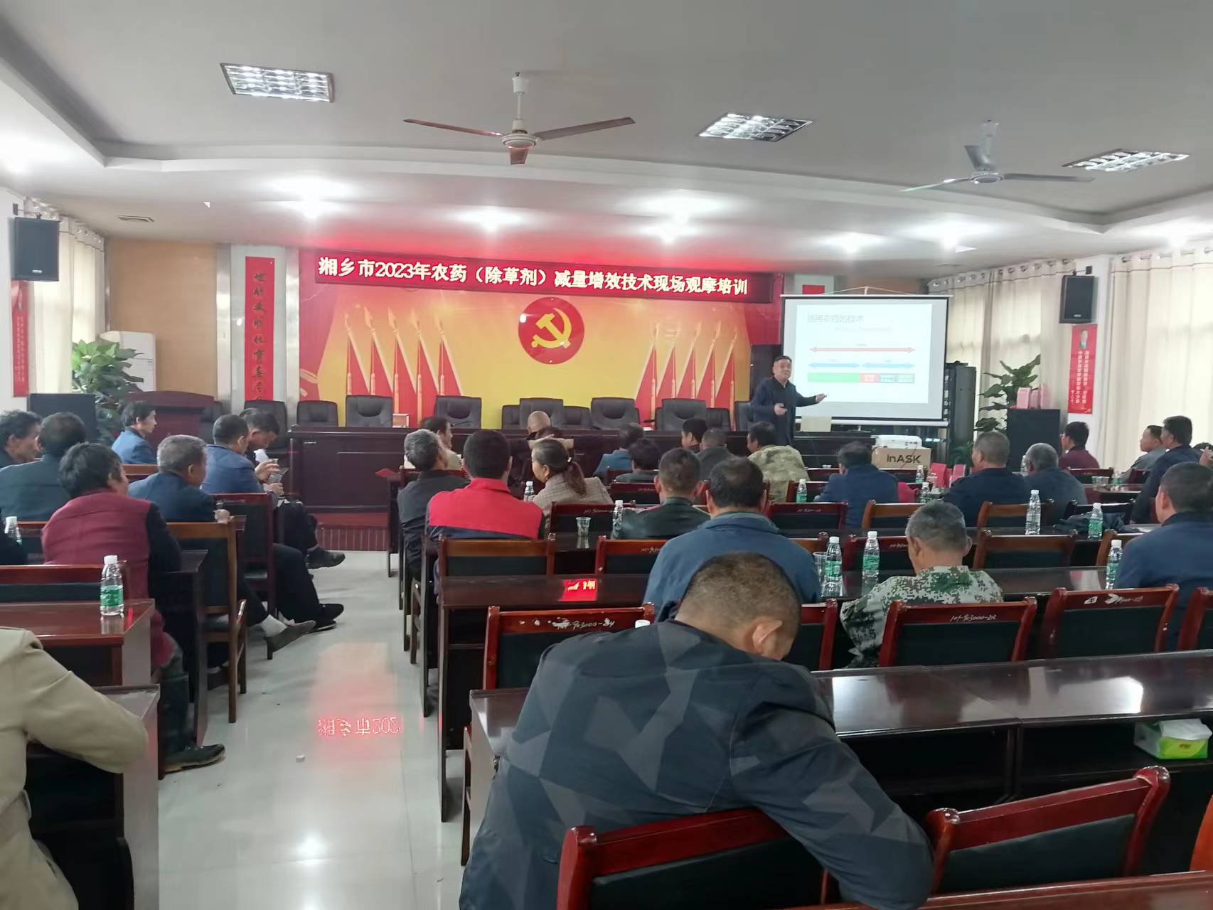为提升稻田杂草防控技术水平,促进除草剂科学安全使用,持续推进农药减量增效工作,5月11日,湘乡市植保植检站组织全市水稻种植合作社和种植大户60余人,在潭市镇召开了稻田除草技术现场观摩培训会。