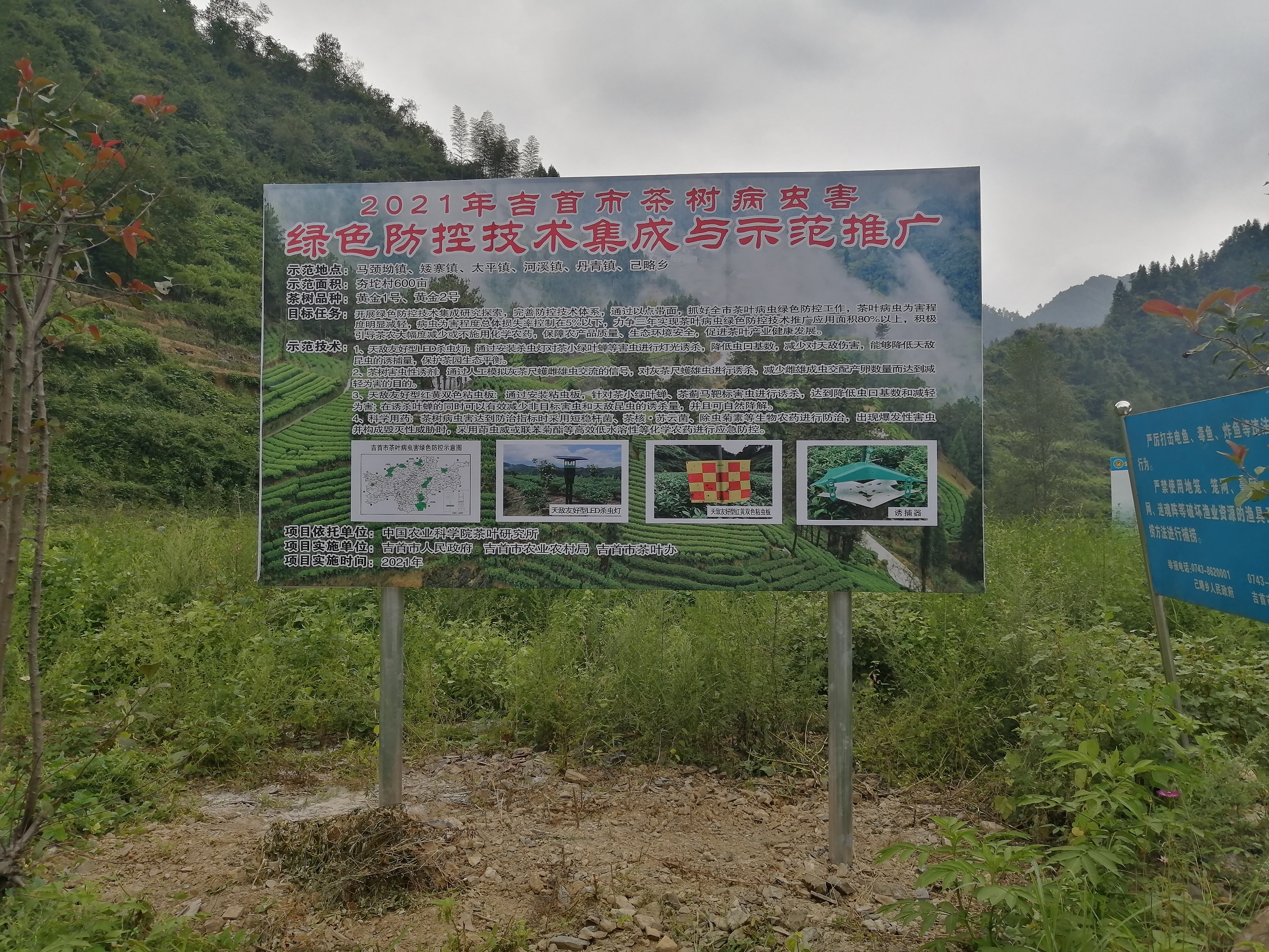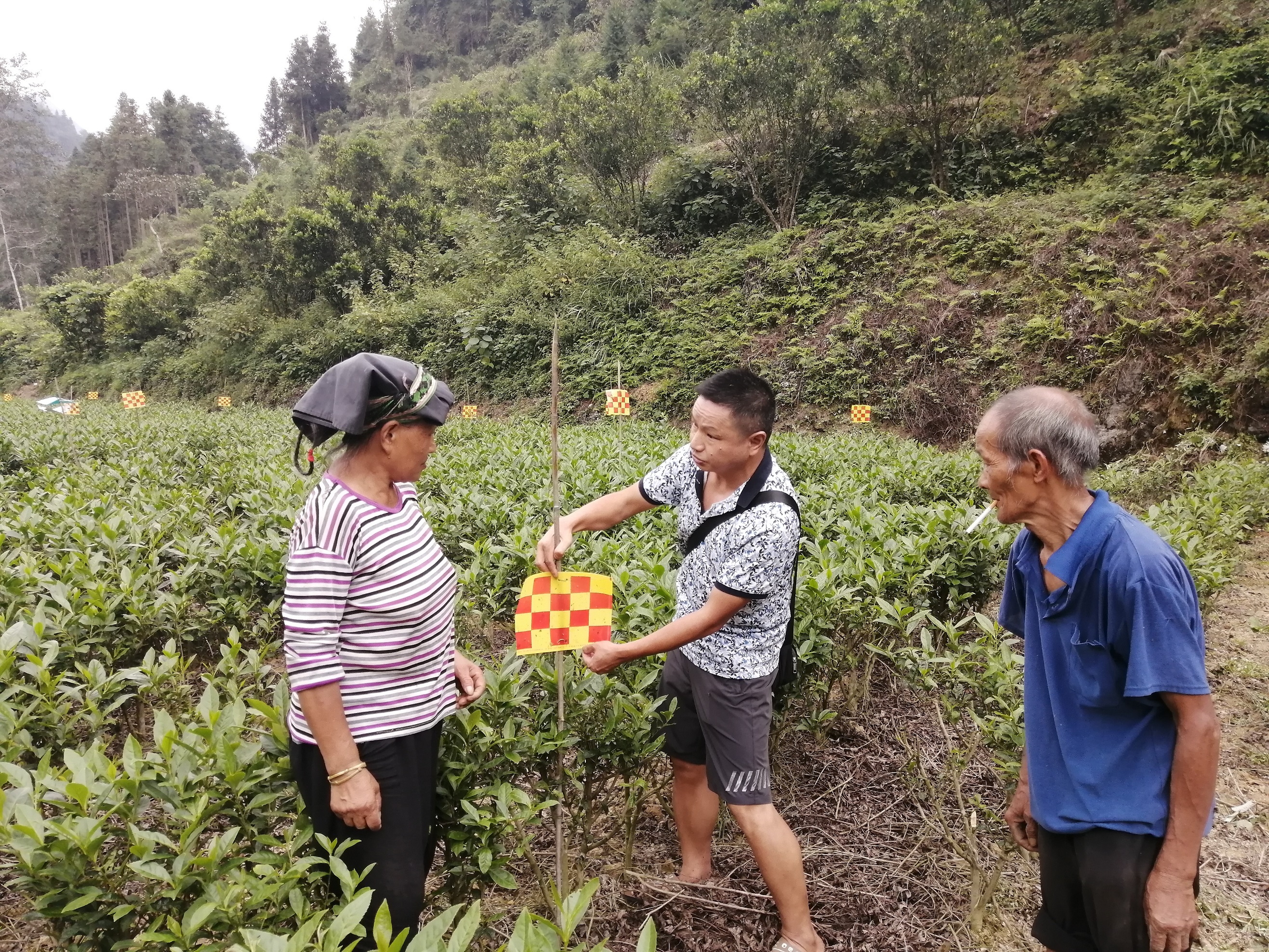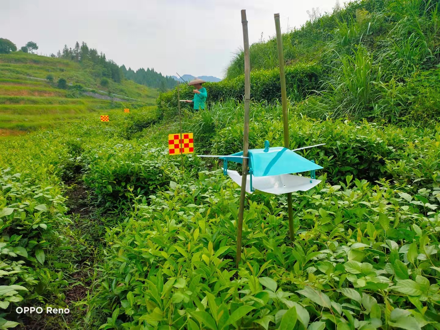 近年来,吉首市农业农村局大力推进茶叶病虫绿色防控技术。2021年在原有基础之上,继续在马颈坳、矮寨、丹青、河溪、太平、己略等6个乡镇,建立共计5000亩的病虫绿色防控与统防统治融合示范基地。在示范园内推广农业防治、生态调控、灯光诱杀、色板诱杀、性诱剂诱杀、以虫治虫、免疫诱抗、生物防治、助剂减量增效、统防统治等“十项”绿色防控技术与专业化统防统治技术有机融合的应用,推行“空中挂灯、(茶)棚面插板、园内喷生物药”的立体生态防控模式。