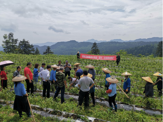 5月31日,花垣县石栏镇大猫村茶叶基地正在开展“烟蚜茧蜂在茶叶上的推广示范活动”,湘西自治州农业农村局、湘西自治州烟草公司、花垣县茶叶产业领导小组办公室、花垣县农业农村局、花垣县烟草分公司的相关领导与工作人员、10家茶叶种植合作社及示范区农户共计60余人参加了此次活动。州植保种子站长向邦豪在讲话中阐述了绿色防控在病虫防治中的重要性,并肯定了烟蚜茧蜂防治蚜虫技术在大农业上的应用前景。湘西自治州烟草公司技术人员现场讲解了烟蚜茧蜂释放注意事项并作烟苗种植示范。