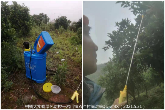 5月31日-6月1日,岩门镇黄双冲村、双冲村,高村镇谷达坡村等示范区抢抓天气组织人员进行了施药。