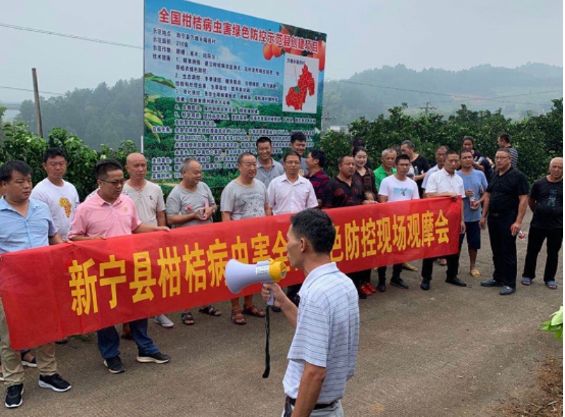 9月4日,新宁县组织县内重点柑桔生产企业、基地负责人和种植大户、脐橙协会会员代表,观摩了崀山镇窑市村、万塘乡福田村柑桔病虫害全程绿色防控现场,分享交流了各地在推进柑桔病虫害全程绿色防控上所取得的经验和成效,并对下一步工作重点进行了安排部署。