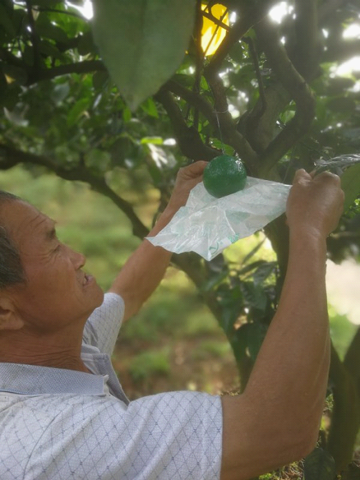 5月11日,在万塘乡福田村5、6组脐橙园里,果农们正在挂放诱蝇球。“有了诱蝇球,脐橙就不怕大实蝇为害了!”一冷姓果农一边熟练的挂放一边高兴的说。