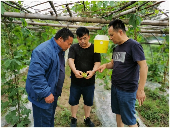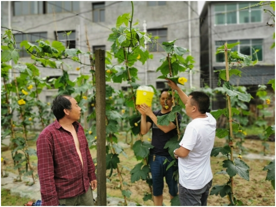为了解决向喜元、潘存军二人种植苦瓜、丝瓜的难题,帮助二人尽快实现脱贫致富,5月31日(星期日),市农业综合服务中心高级农艺师张龙杰与洪江区植保植检站何泽安站长、中方县植保植检站杨付前站长一道,给向喜元、潘存军菜地安装了瓜实蝇诱捕器,现场宣传、培训苦瓜、丝瓜绿色防控技术。