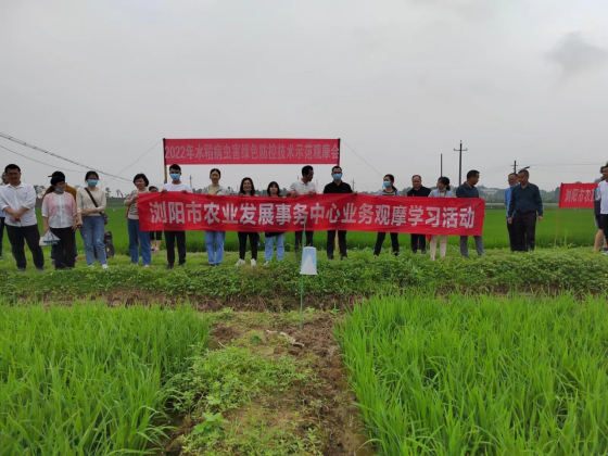 目前浏阳市早稻正处于孕穗—抽穗的关键时期,5月27日上午,浏阳市农业发展事务中心组织全体干部职工、乡镇农技人员和种植大户前往浏阳市北盛镇亚洲湖村“四高基地”进行水稻病虫害绿色防控技术示范观摩。“四高基地”是浏阳市按照“高标准、高技术、高品质、高产量”的总体要求建成的农田项目区,占地500余亩。