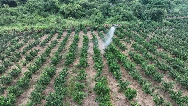 眼下,正值脐橙膨大期和转色期,为抢抓秋管有利时机,道县各大脐橙基地的果农们利用空中植保无人机科学开展秋季管护作业,全方位助力脐橙丰产丰收。