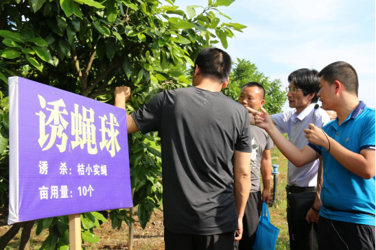 培训期间,县农业农村局总农艺师邓俊生带领学员观摩了萱洲镇天水村的奇山红柚基地,学习参观绿色防控技术及产品,了解产品价格、技术优势和使用方法,并下园调查示范产品的防控效果。