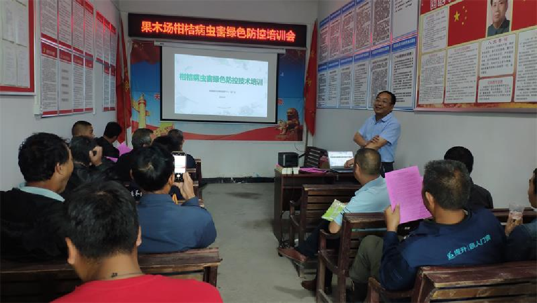 培训会上,植保技术人员就桔农遇到的实际生产问题,有针对性提出改进措施和防控意见。技术人员详细讲解了柑桔大实蝇发生为害的特点,防治关键技术等要点(柑桔大实蝇成虫诱杀、捡拾并无害化处理虫果两项绿色防控技术),引导桔农正确认识柑桔大实蝇发生规律、防治技术,树立起可防可治的信心;指出柑桔砂皮病防控重点在于及时清园、修剪(桔园透风透光不积水)、不施用草甘膦除草、合理施肥(增强树体抗逆能力)、科学用药等综合防控技术。