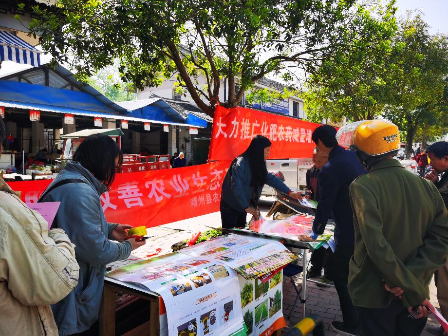 4月19日,靖州县农业农村局植保植检站与艮山口便民服务中心工作人员利用赶集日走上街头宣传农药减量增效。工作人员在人流量大的路段,向过往群众讲解农药减量的意义,针对主要粮食和经济作物施药情况与农户展开了具体的询问和调查工作,向过往群众传授农药减量控害技术、如何科学选购正规农药、如何开展农作物病虫害绿色防控等。
