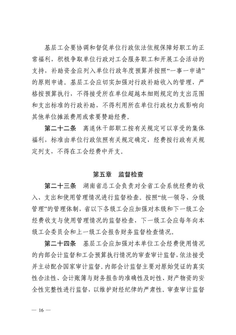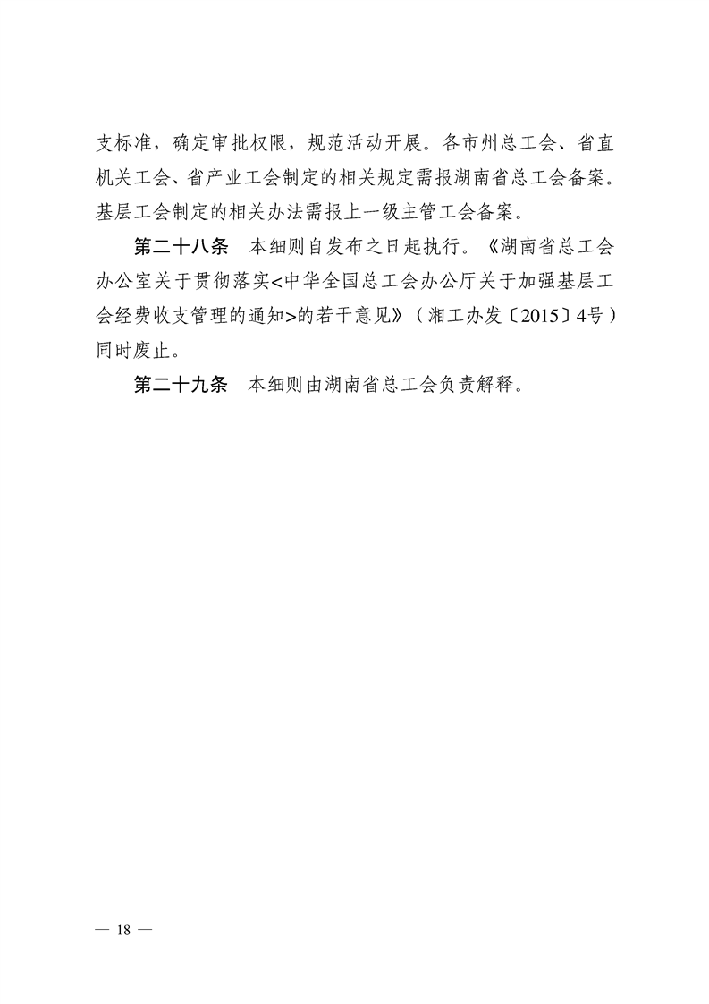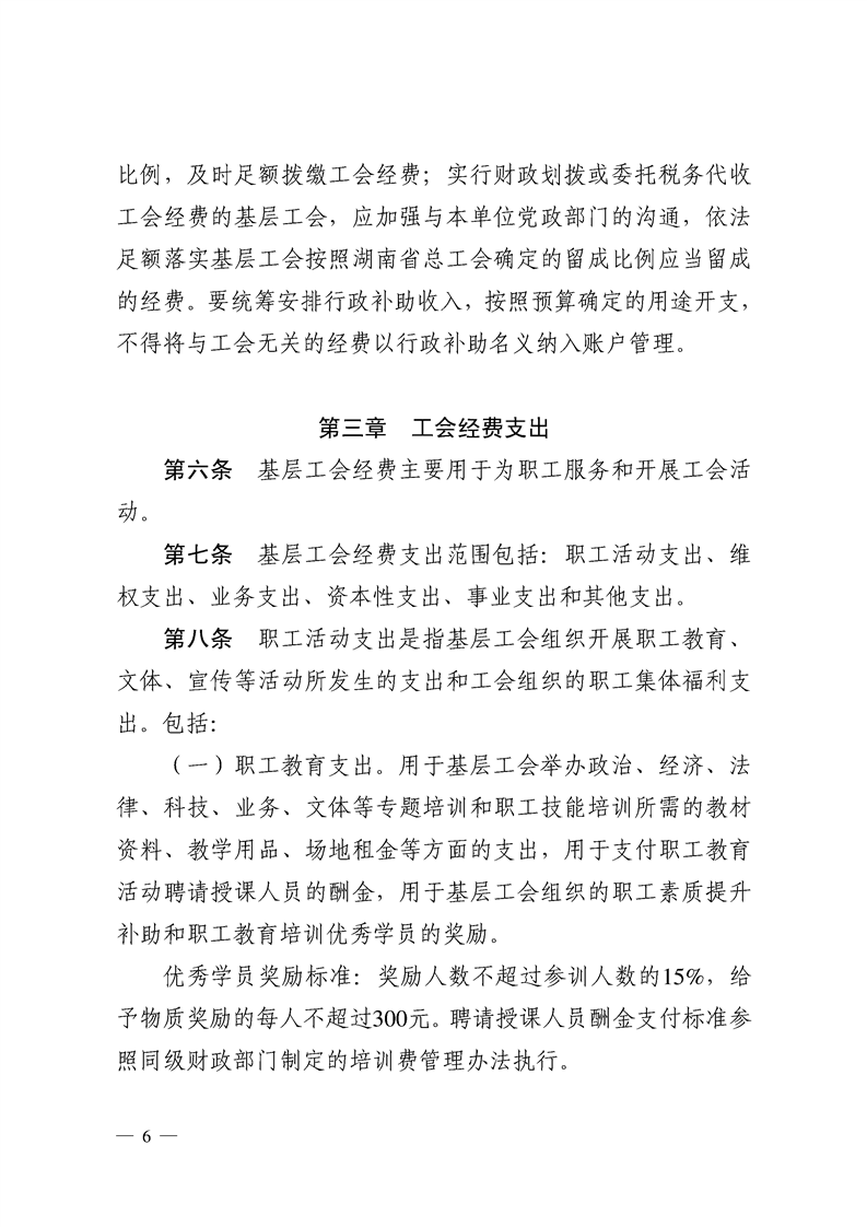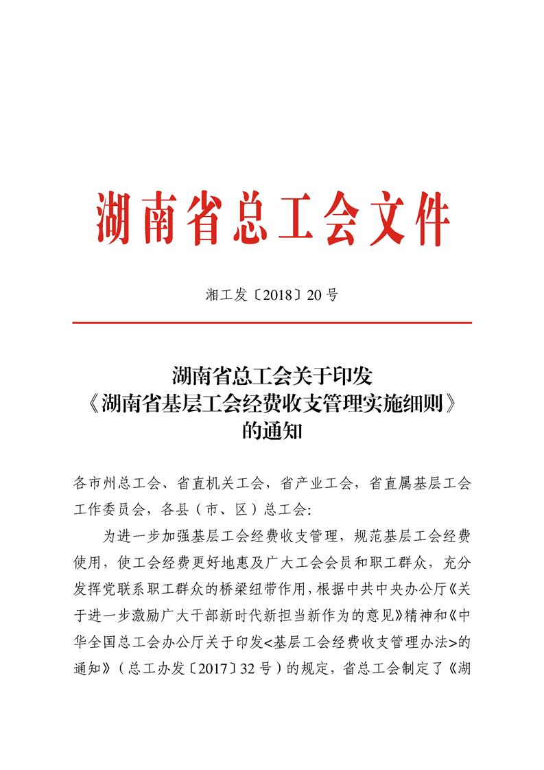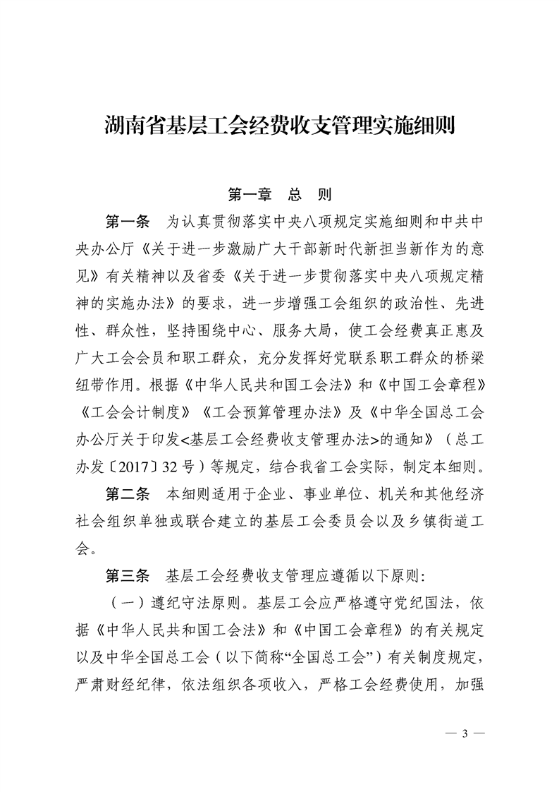湖南省基层工会经费收支管理实施细则
