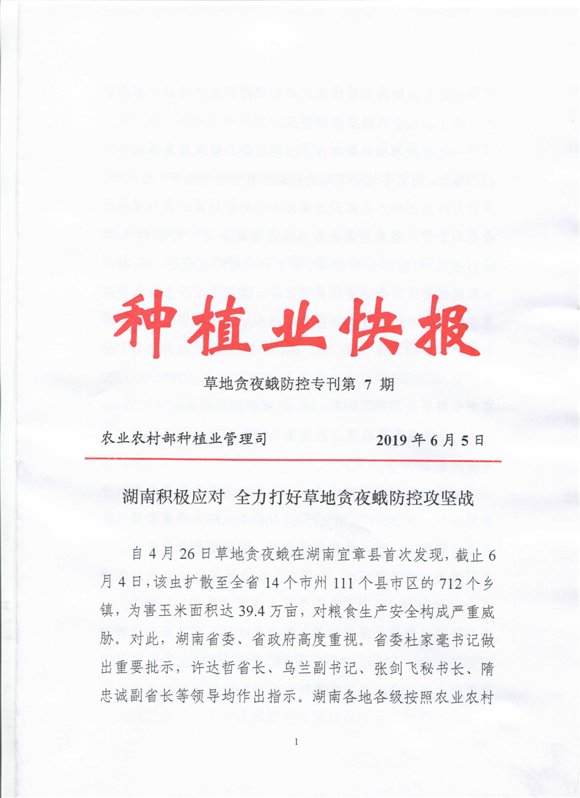 种植业快报-草地贪夜蛾专刊第7期-湖南积极应对 全利打好草地贪夜蛾防控攻坚战