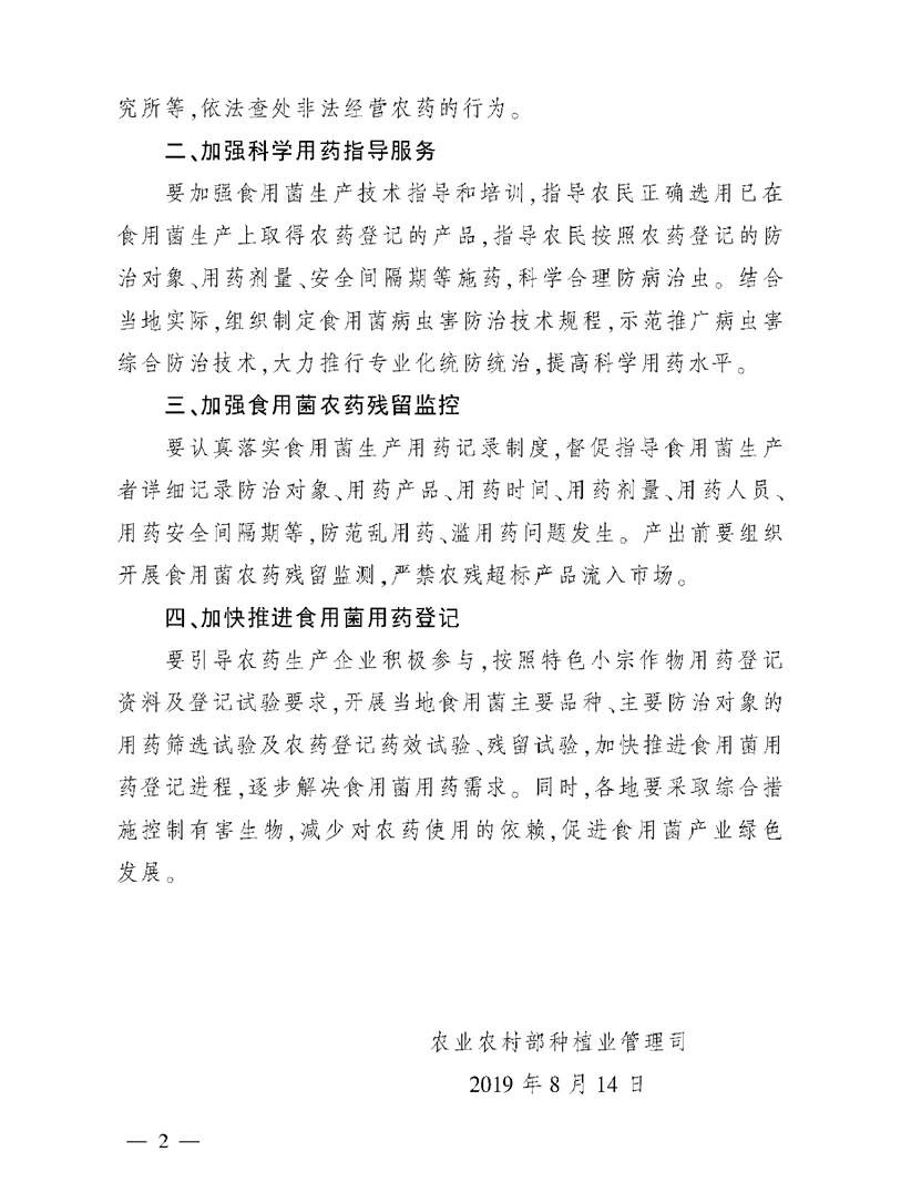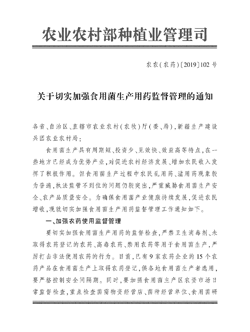 农业农村部种植业管理司关于切实加强食用菌生产用药监督管理的通知