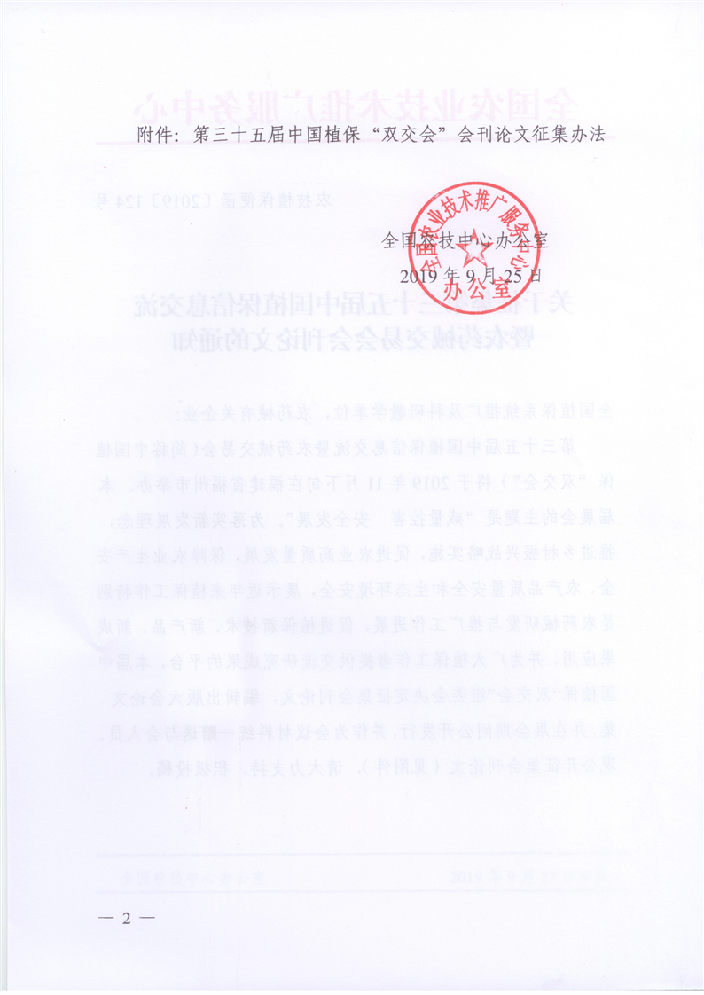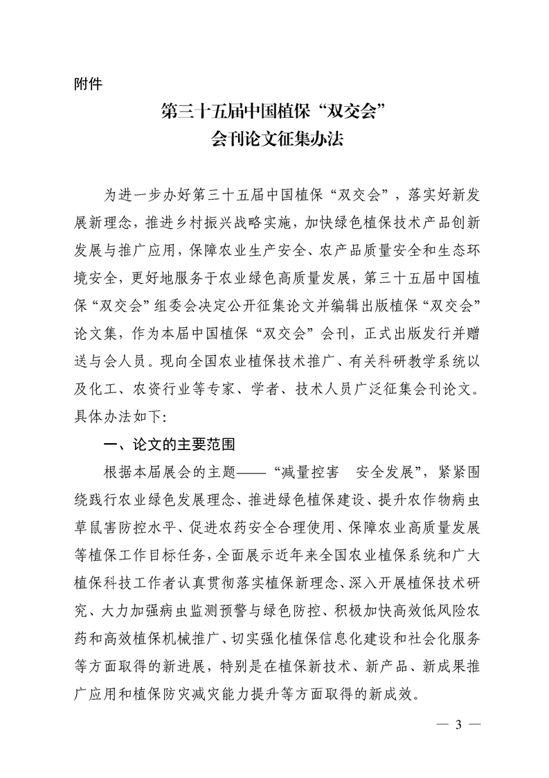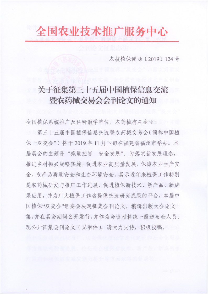 关于征集第三十五届中国植保双交会会刊论文的通知